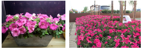 本次虹越的花卉展示會在地栽上大面積地應用了坂田公司今年推出的矮牽牛新品種“雨林”系列。“雨林”系列的優勢在于耐雨水和耐高溫,在炎熱多雨的夏季,其花朵能在雨后迅速恢復,展現出旺盛的生命力和對環境適應力, “雨林”優越的表現成為本次展會的新寵。