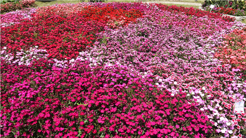 石竹“鉆石”是早生品種,無論盆栽還是地栽,主側枝的花期都一致,且系列各花色長勢、花期均勻,用于組合花壇有著不俗的表現。