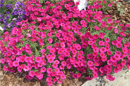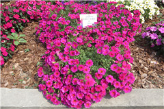 矮牽牛“雨林”系列具有耐雨淋的特性,在大雨條件下花瓣依舊挺立,且雨后株型恢復迅速,可以迅速恢復上花。5月12日展示會當天適逢大雨,矮牽牛“雨林”依舊正常開花,可見其抗性之出色。近幾年矮牽牛應用廣泛,各地土壤病害嚴重,矮牽牛“雨林”對病害有著較強的抵抗能力,可以照常種植。