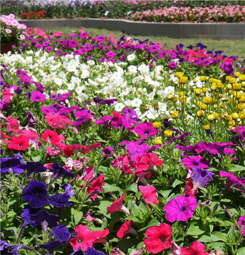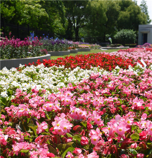 花壇應用著重展示了矮牽牛“雨林”系列、四季海棠“神曲”、“大使”、“議員”系列以及石竹“鉆石”系列。