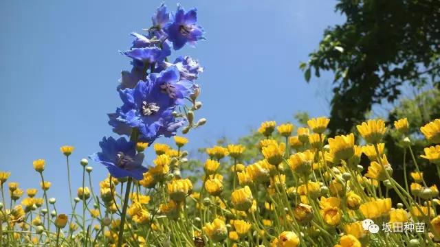私以為,大花飛燕草那精巧的花朵,靈動可愛的距像極了將飛的小鳥;那純正的、攝人心魄的藍色是愛琴海動人的海水,亦或是川西高原上純凈的天空。還有那高大挺拔的花穗,向來是花園中不可忽視的一道風景,即便用作花境后方的襯托和背景,它的風采和光芒依舊無法掩蓋。