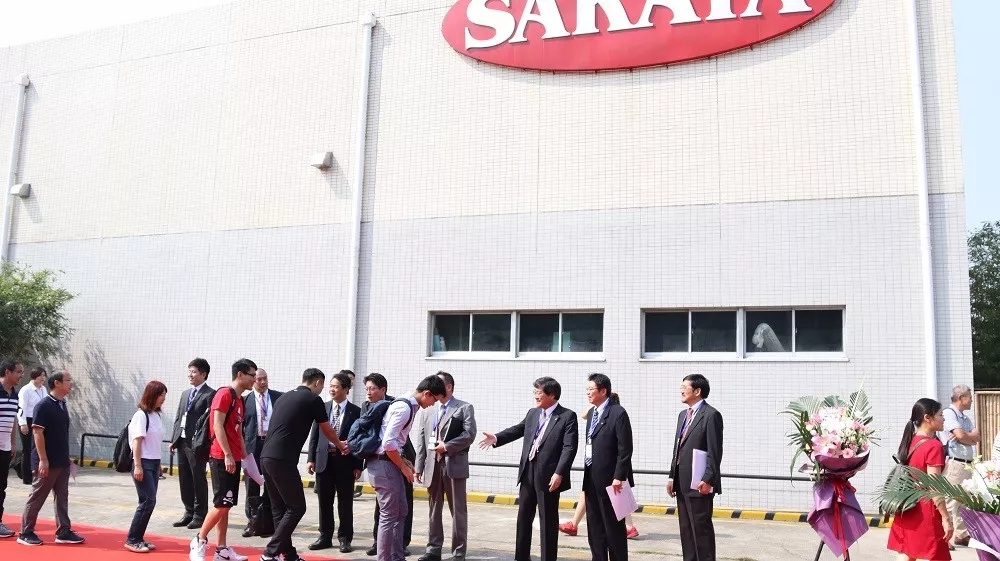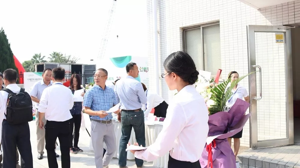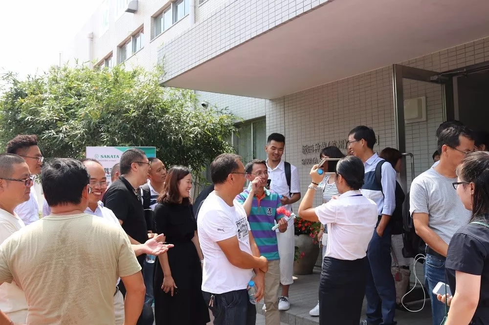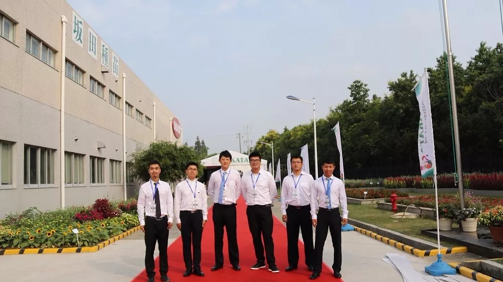 進入坂田中國園區,站在會場外迎接的是以日本坂田種苗株式會社社長坂田宏為首的公司領導團隊。他們與到場賓客一一握手,待到賓客全部進入會場,他們才開始入座。為了保持良好的形象,他們不停擦拭臉頰的汗水。身著西裝,他們一直站在陽光下。