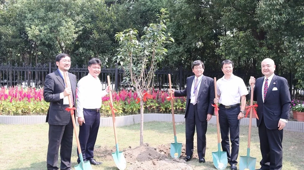 為了紀念二十周年這一難忘的時刻,坂田宏、許超震、片山和之、陸定峰、樓惠寶等共同在花壇栽下了一棵櫻花樹以作紀念。許超震說等到下一個十年,這棵樹一定長得很大,就像坂田中國一樣發展壯大。