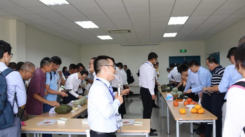 與會人員與坂田中國員工探討花卉品種,指出市場對性狀的需求。